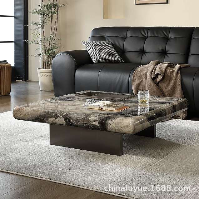 现代简约岩板小户型意式极简方形茶几客厅家用高级落地茶几桌子