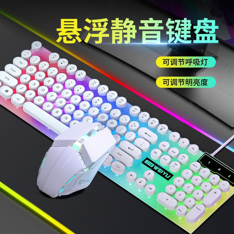 卫域朋克机械手感游戏呼吸效悬浮发光办公台式笔记本通用键盘鼠标