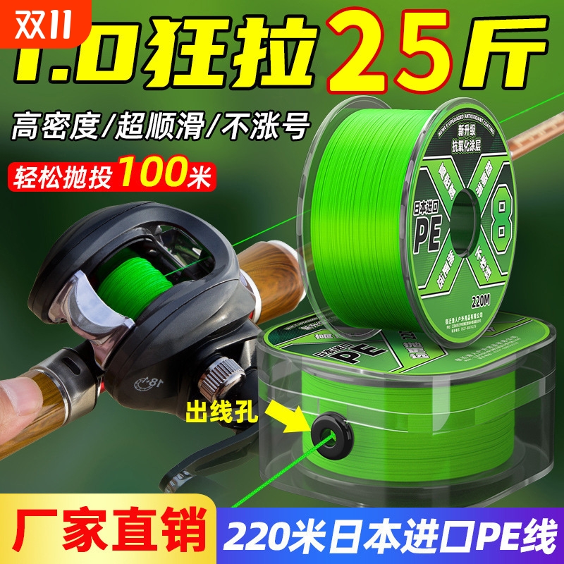 日本进口高端路亚pe线主线专用鱼线抛竿大力马中国红8编微物沉水