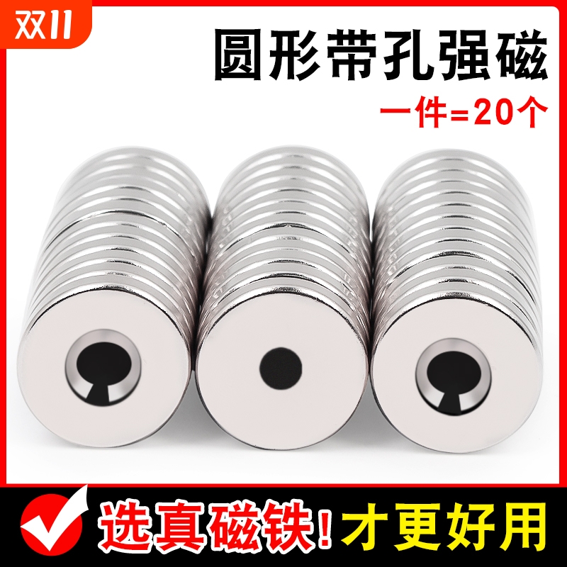 高强力磁铁圆形带孔钕铁硼吸铁石强磁力磁铁贴片小磁钢沉孔磁石块