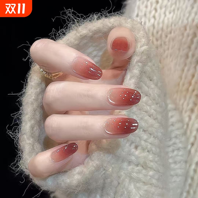 水嫩欲滴晶莹剔透的红石榴猫眼玻璃珠美甲穿戴甲气质显白假指甲片