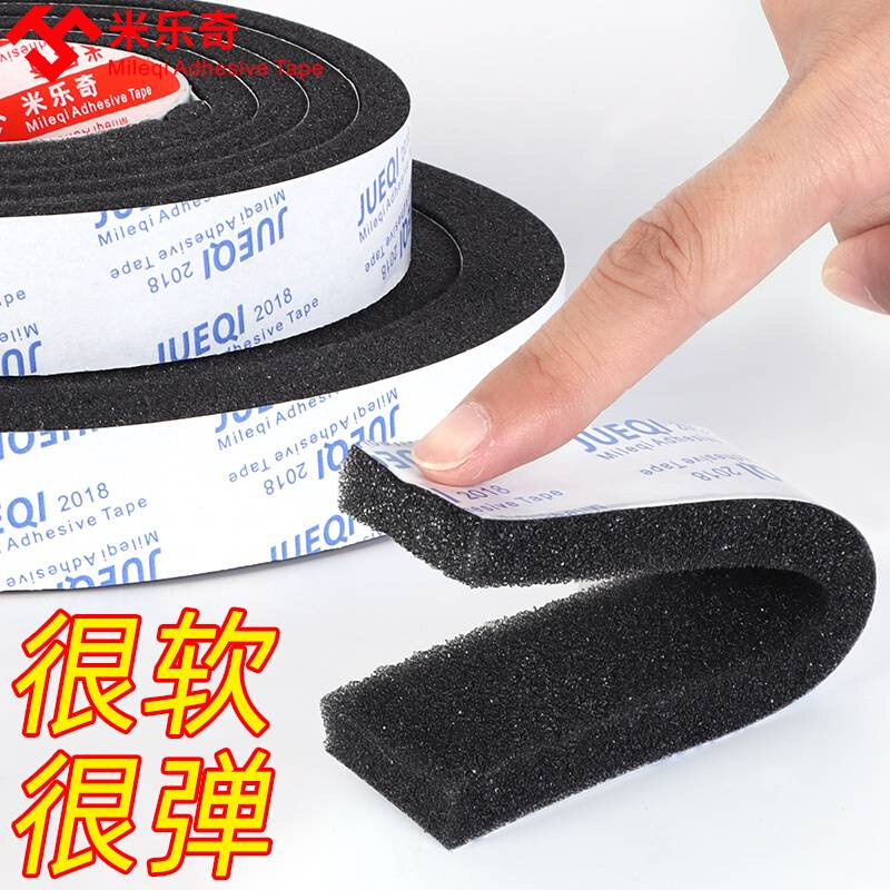 海绵黑色单面胶带柔软透气门窗衣柜橱柜缝隙自粘密封条隔音缓冲降