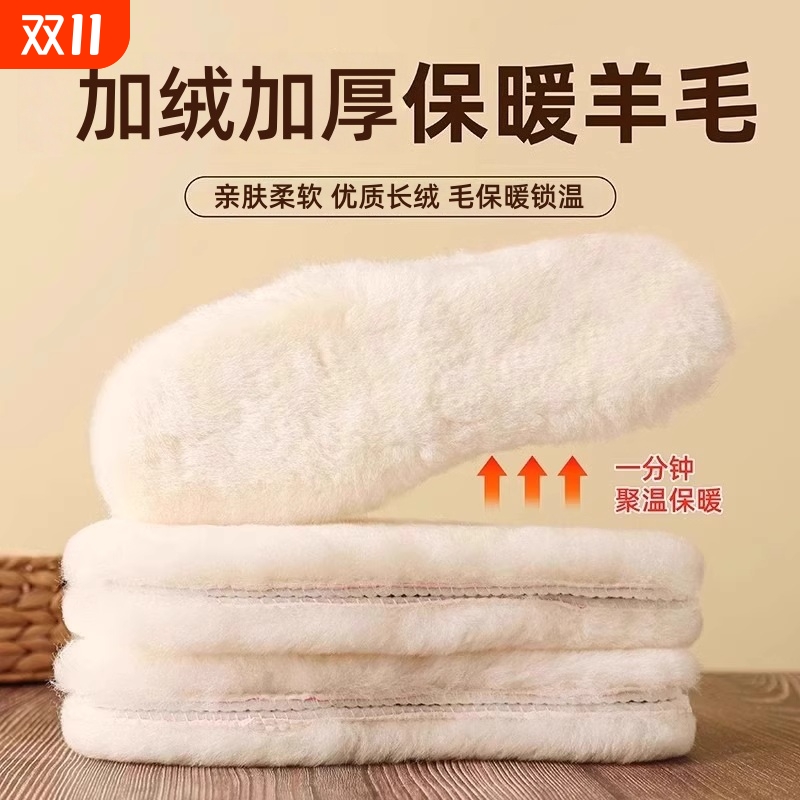 澳洲100%纯羊毛棉鞋垫羊皮毛一体保暖男女冬季加绒加厚雪地靴吸汗