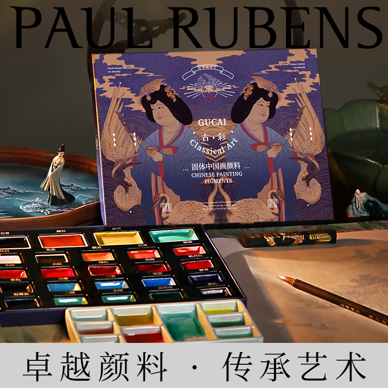 鲁本斯青蓝固体国画颜料初学者24色国画颜料套装国画工具用品全套学