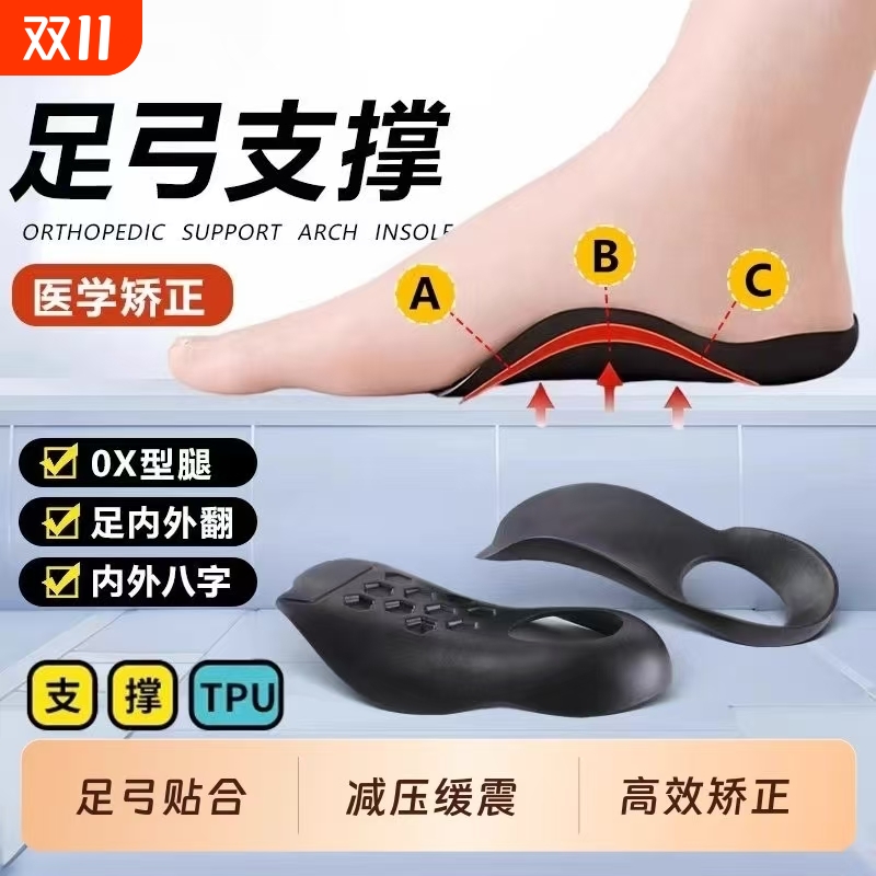 足弓支撑鞋垫扁平足xo型腿内外翻矫正直腿神器儿童男女足外翻专业