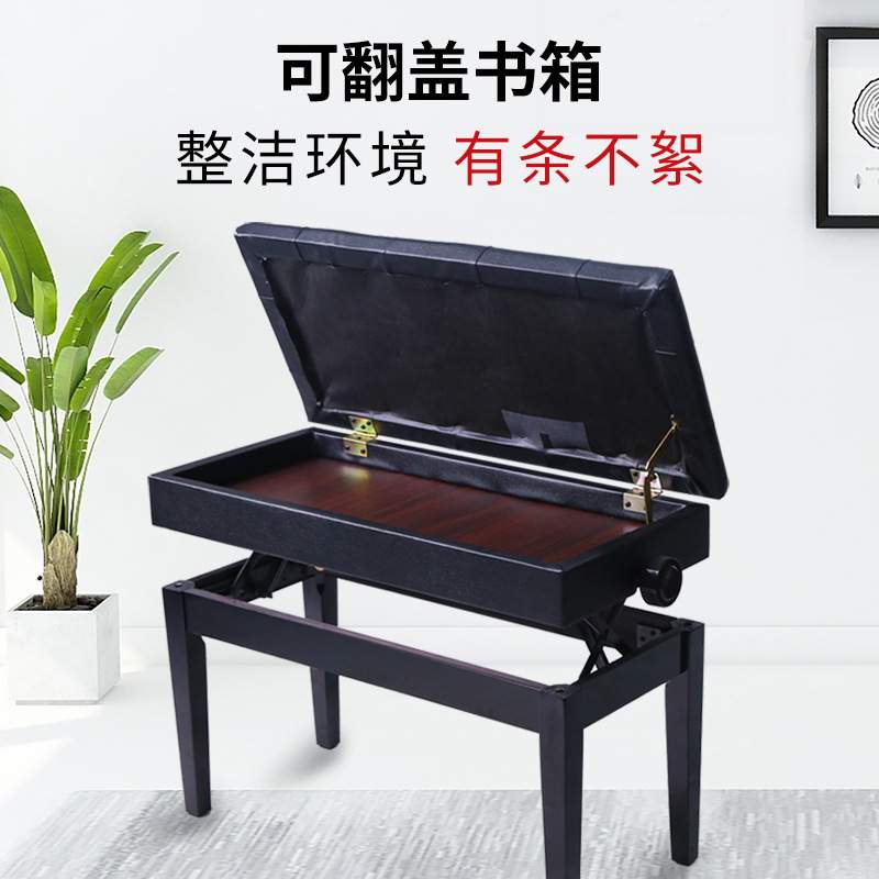 双人直腿带书箱升降凳 木质钢琴凳 黑白红棕色胡桃木色