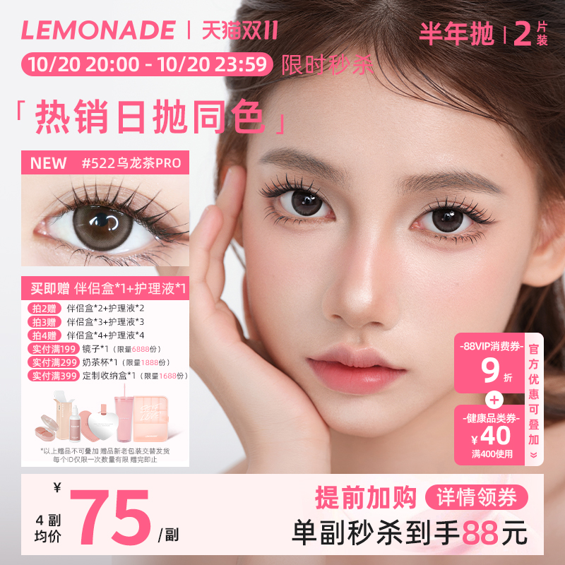 隐形眼镜半年抛2片装LEMONADE美瞳女彩色近视眼镜 轻混血款