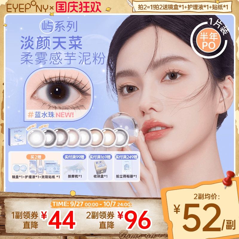 EYEPONY美瞳屿半年抛水雾丁香雪松石无锁边隐形眼镜【拍2=1