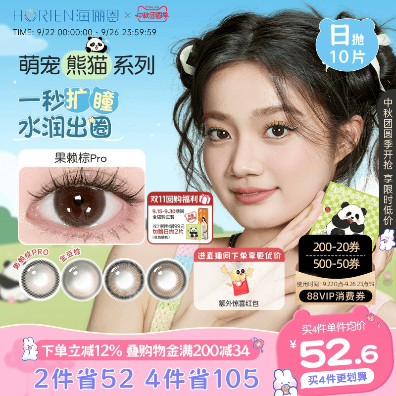 【大直径上新】海俪恩萌宠熊猫美瞳日抛10片彩色隐形眼镜果赖PRO