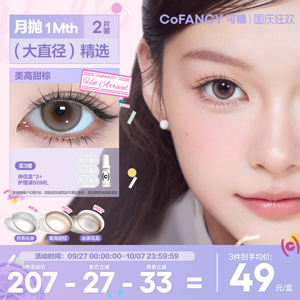 上新!COFANCY可糖珍宝珠联名半年抛大小直径彩色隐形眼镜美瞳