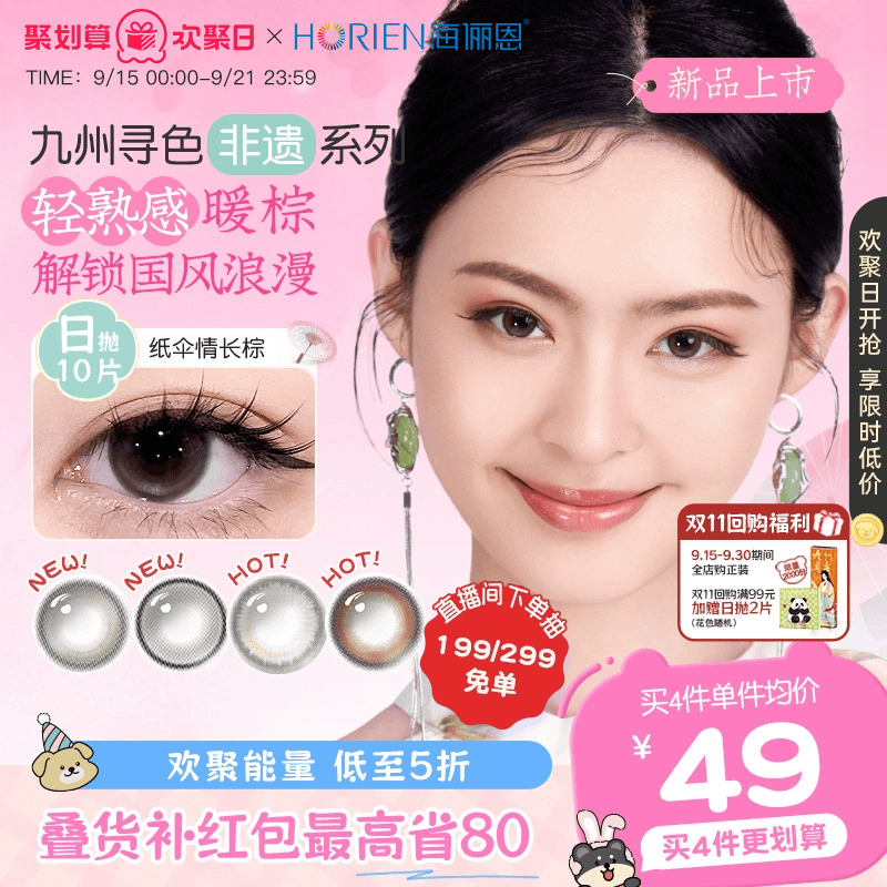 【花色上新】海俪恩九州诗经美瞳日抛10片彩色隐形眼镜国风棕色