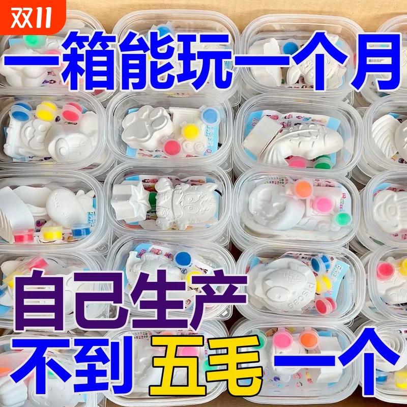 儿童石膏娃娃袋装diy涂鸦61儿童节学生礼物摆摊批发迷你白胚颜料