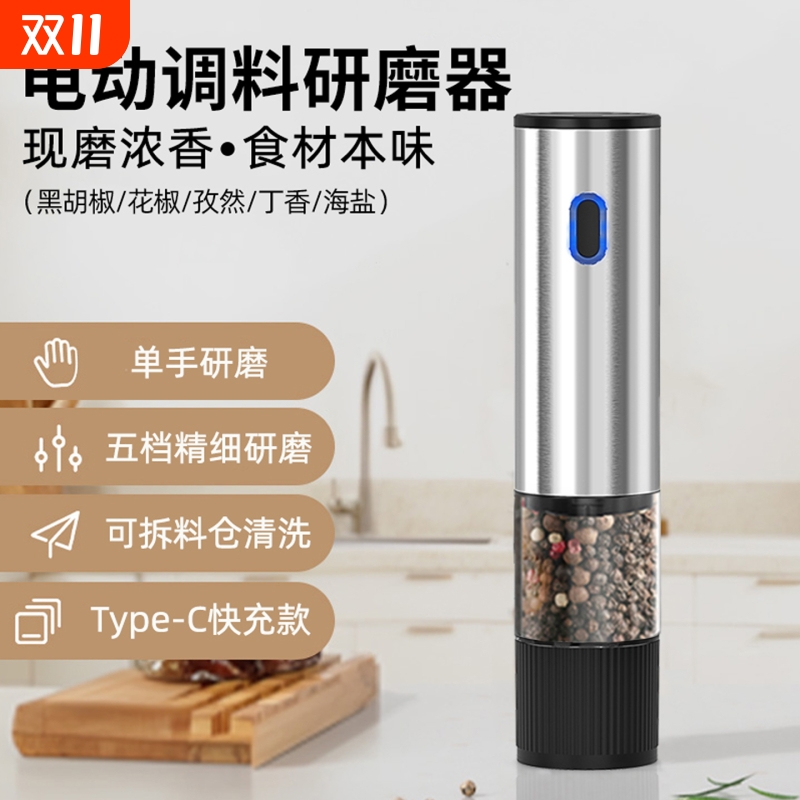 电动胡椒研磨器家用调料盒花椒海盐研磨机便携不锈钢胡椒粒研磨器