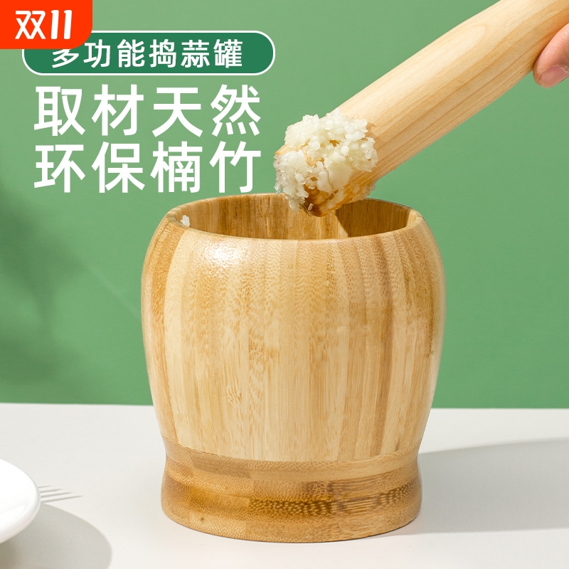 捣蒜罐器蒜泥器压蒜器手动家用楠竹捣碎器大姜磨蓉药盅研磨蒜舀子