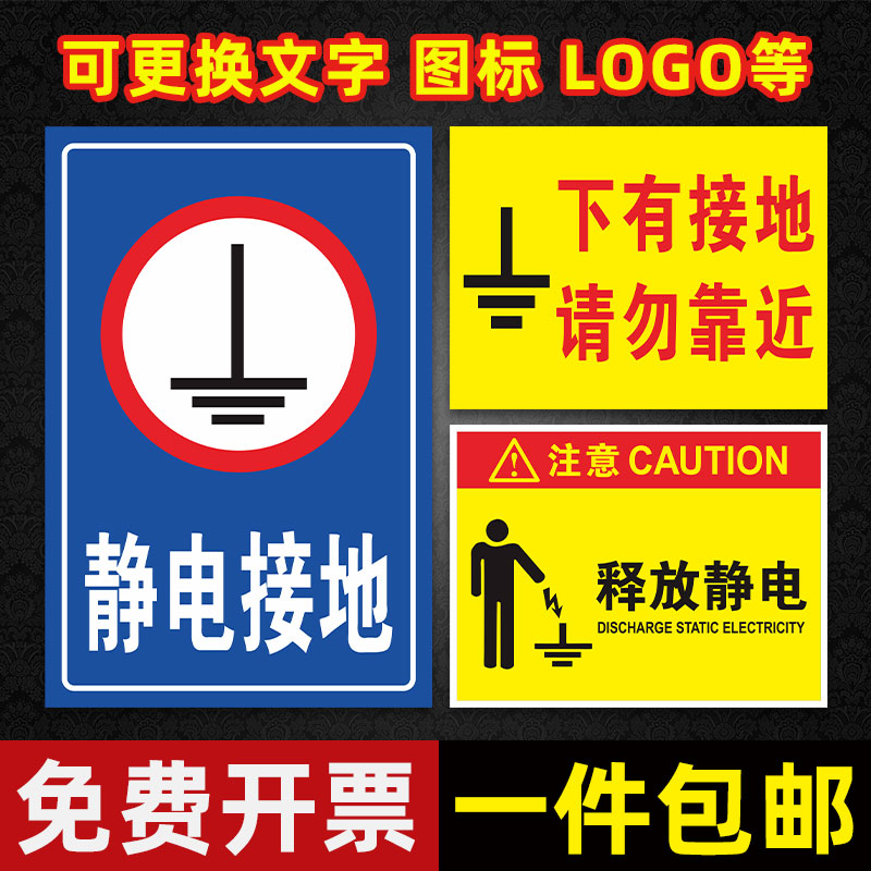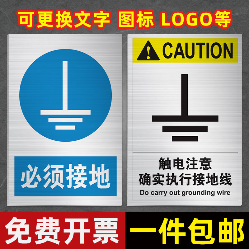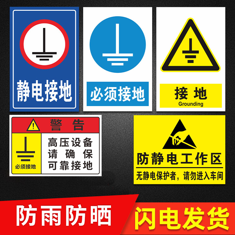注意接地警示警告标识牌防静电工作区 机器机械高压设备必须连接地线