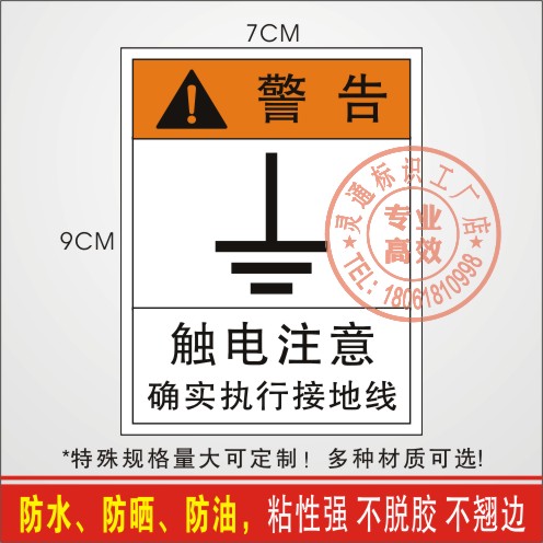 触电注意必须确实执行接地线机器械设备安全标签警示警告指示标识