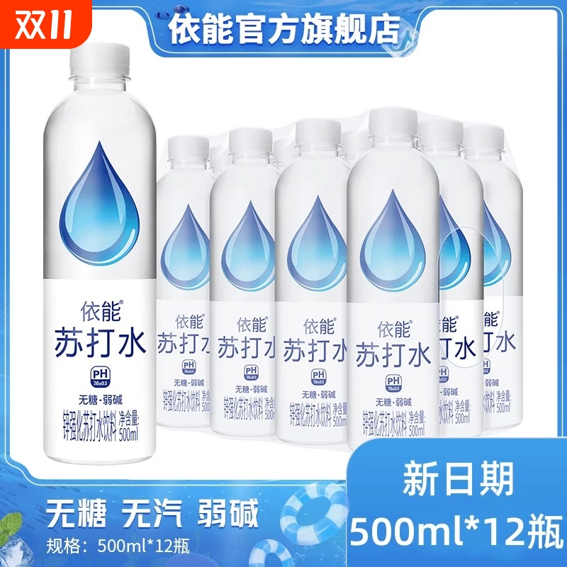 苏打水依能饮料锌强化青柠500ml*6瓶饮品0糖0脂0卡弱碱瓶装