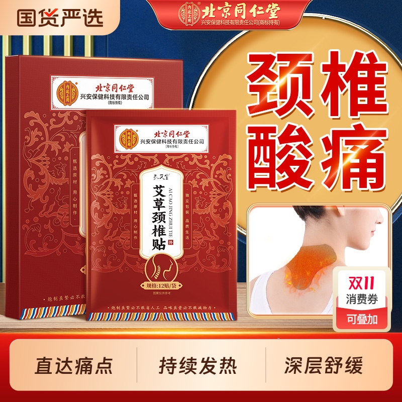 北京同仁堂艾草颈椎贴热敷肩周疼痛压迫神经专用艾灸发热官方正品