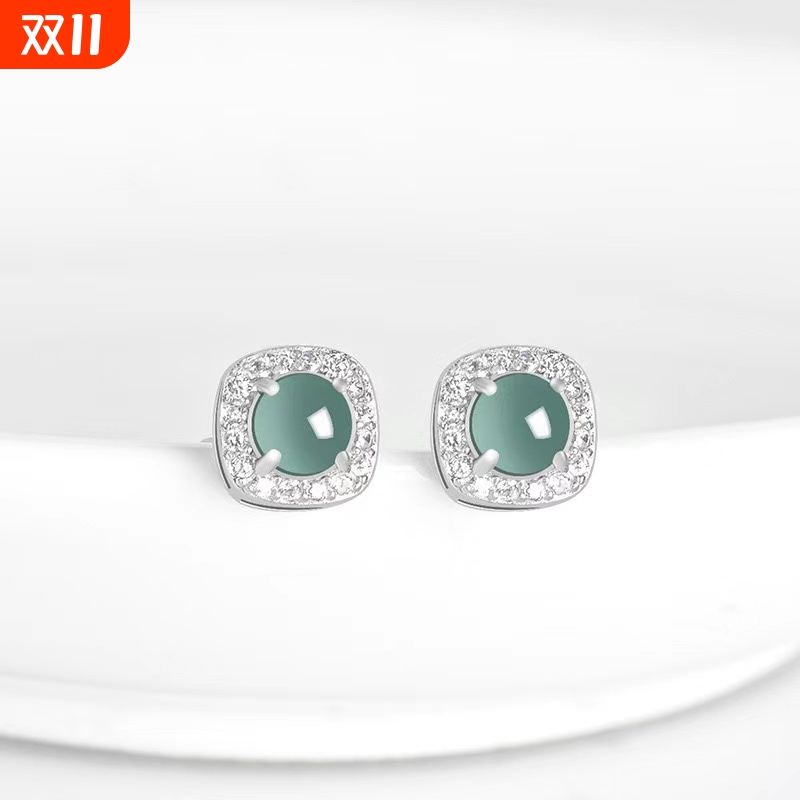 天然蓝水蛋面S925银镶耳钉