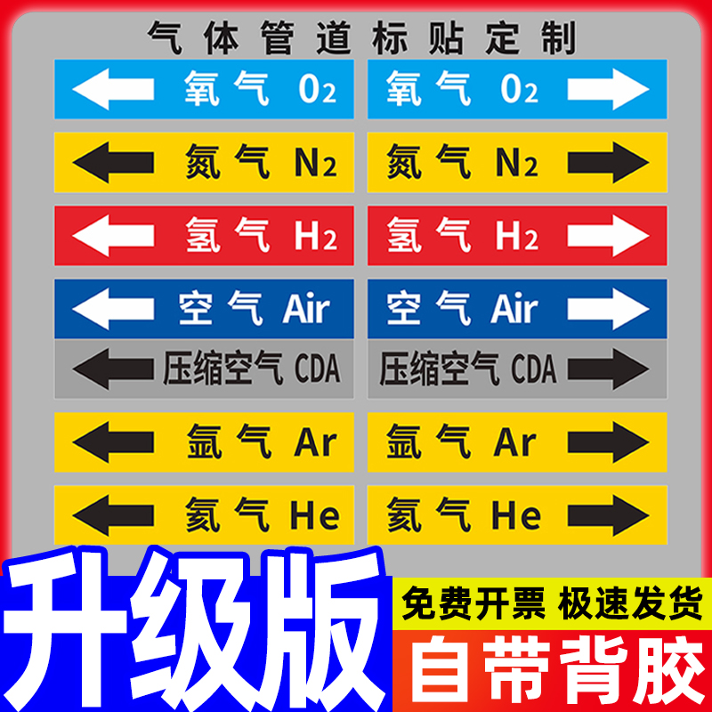 压缩空气管道标识贴纸箭头反光膜介质化工业色环消防安全导向指向流向