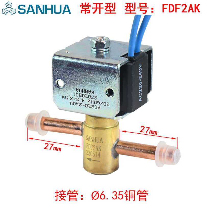 三花电磁阀FDF2AK常开空气能空调制冷制冰机化霜电磁二通阀旁通