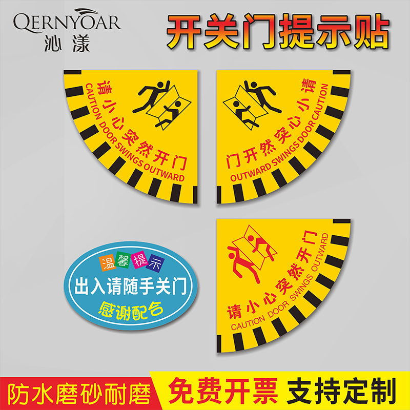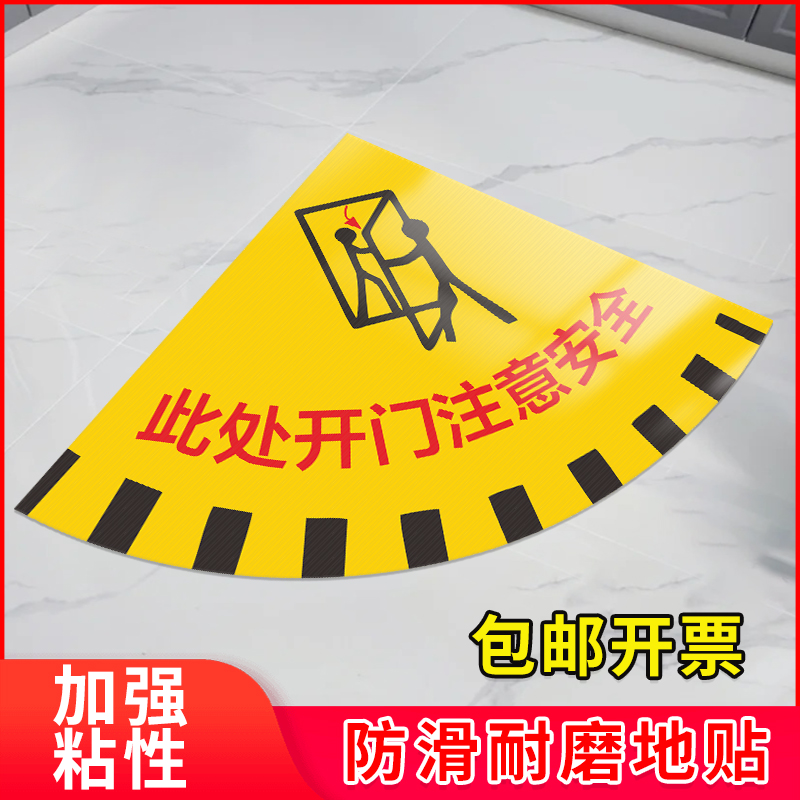 请小心突然开门地贴 防水标识贴室内扇形当心开门耐磨PVC地面贴