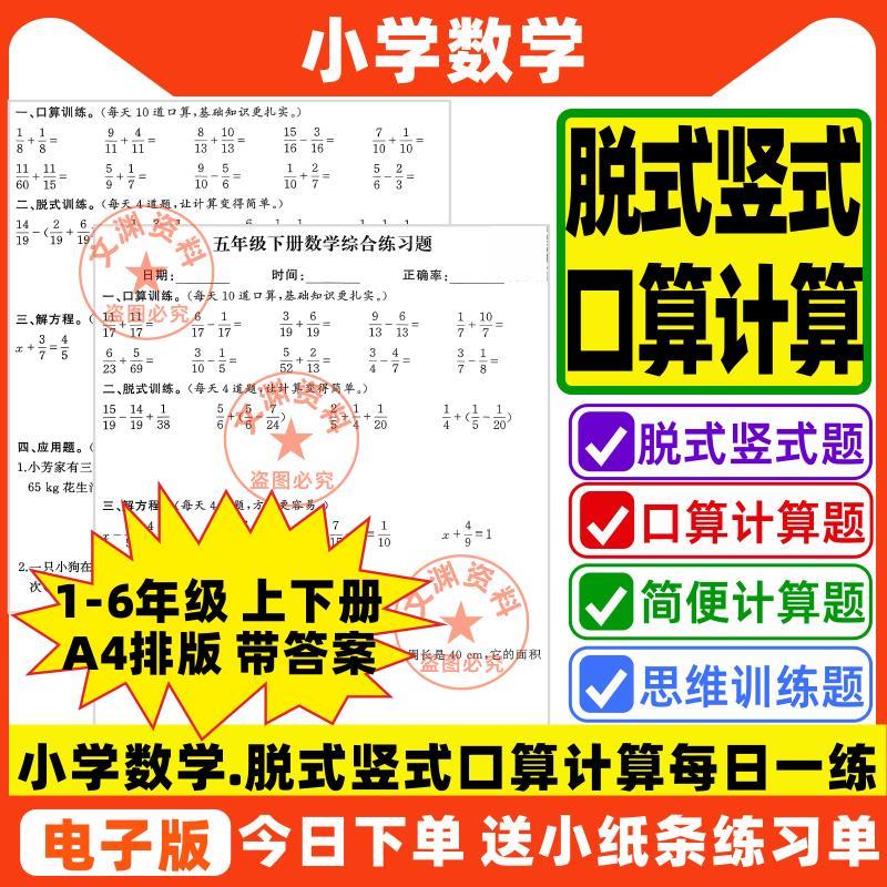 小学数学综合练习题口算竖式脱式简便运算解方程计算题应用题练习