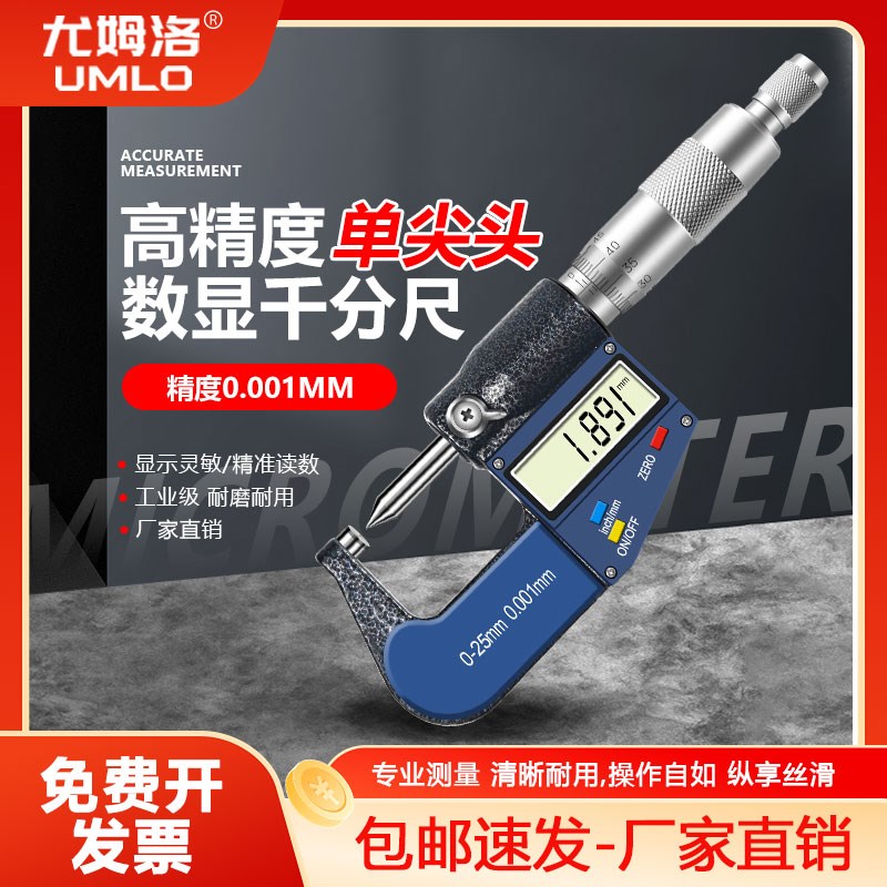 0-25数显千分尺尖平头60圆头管壁厚刀口叶片外径管壁厚小头