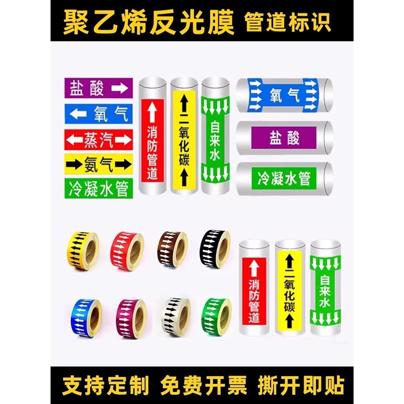 热销管道标识贴纸色环介质流向标签贴工业化工消防国标箭头剪头反