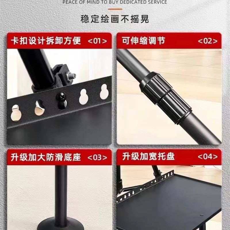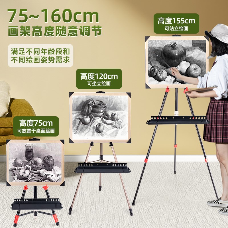 大号手摇加粗加固铝合金画架画板美术生可折叠伸缩便携铁架子支架