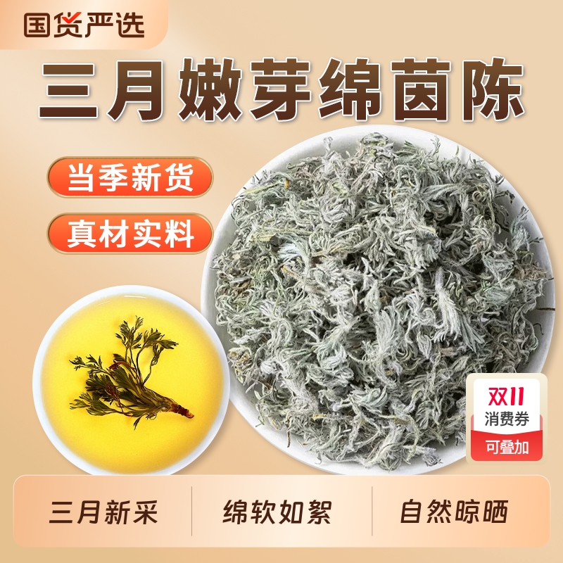 三月茵陈中药材官方旗舰店白蒿棉茵陈蒿绵茵陈因陈泡茶水新鲜散装