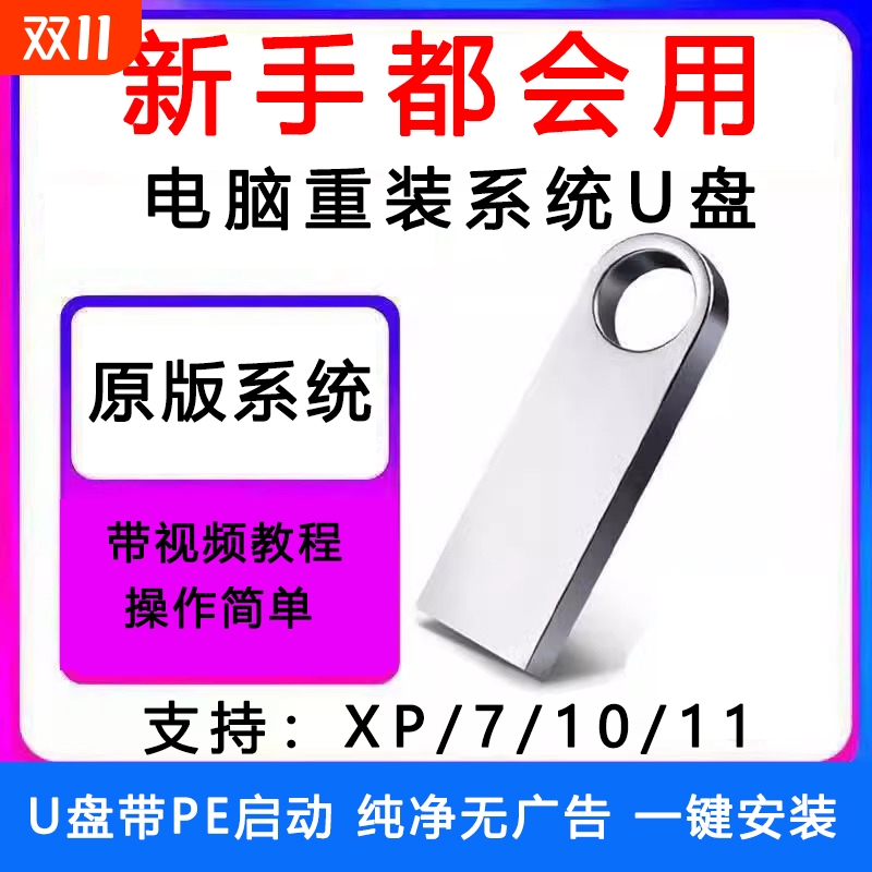 电脑重装系统u盘win10/11/7/XP正版一键安装PE启动纯