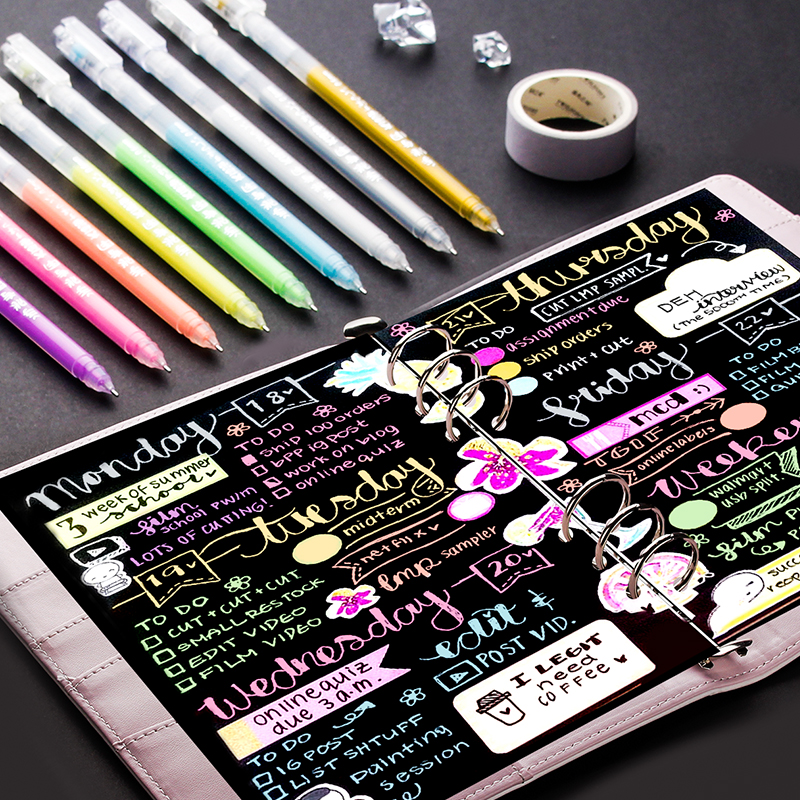 速发彩色高光绘画笔学生手账笔美术素描手绘勾线笔白色笔芯白光记