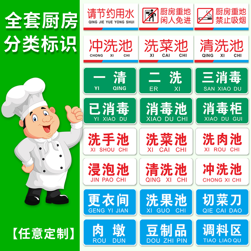 厨房标示牌贴定制荤素4d厨房管理