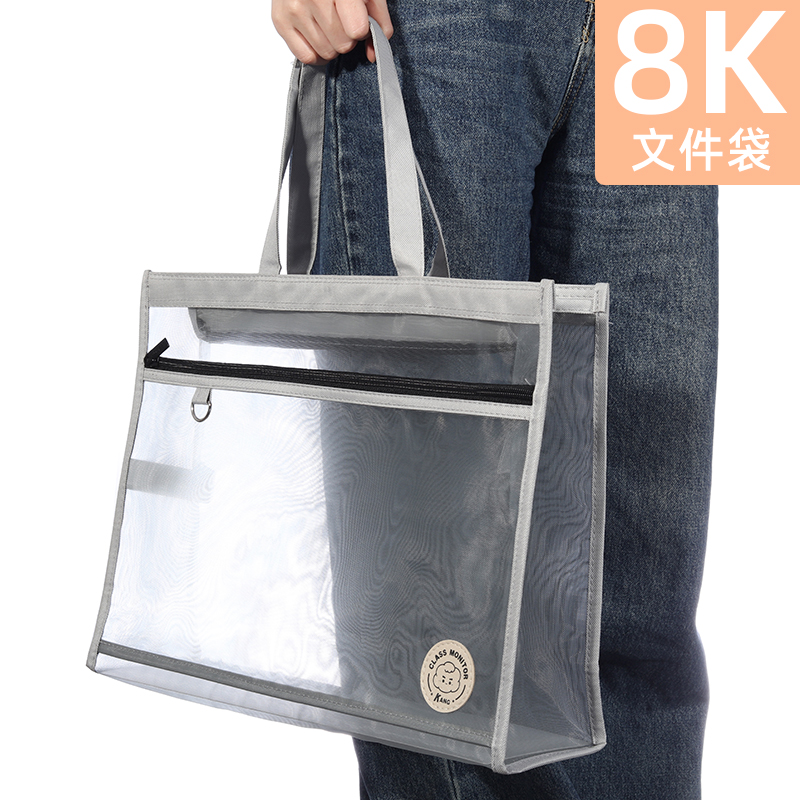 8K美术袋手提网纱透明网格文件袋学生画画收纳包分类加厚手拎素描