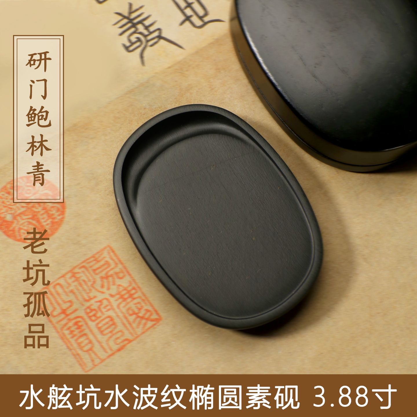 鲍林青名家歙砚老坑 水舷坑椭圆素砚3.88寸 文房宜收藏下发墨好