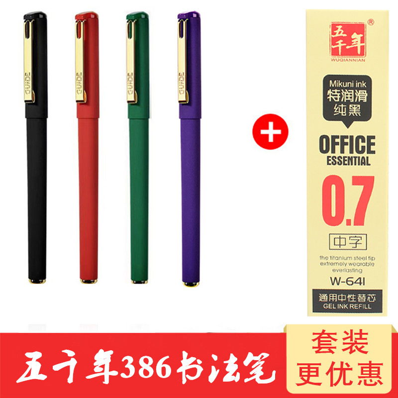 五千年0.7mm金属子弹头386黑红绿紫签字碳素水性学生考试练字