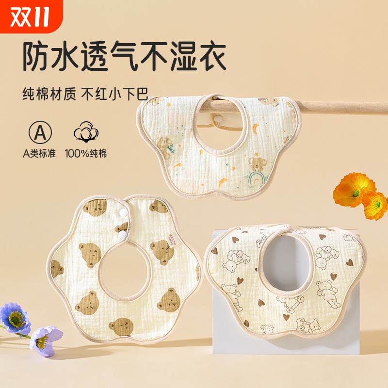 婴儿口水巾纯棉围嘴纱布新生儿防水吐奶旋转围兜男女宝宝可爱围脖