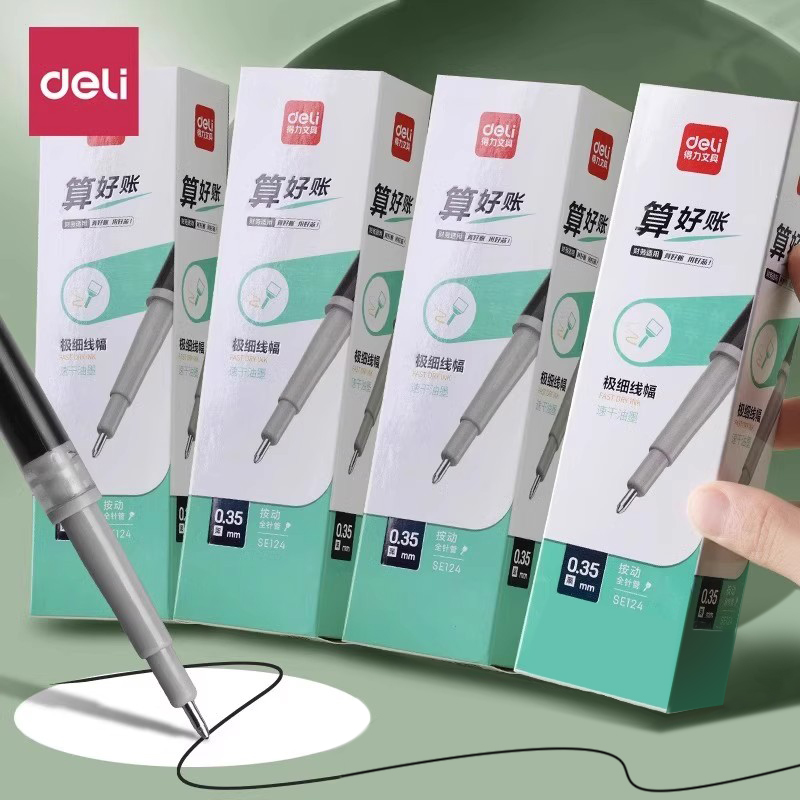 得力速干按动中性笔芯0.35mm全针管财务办公记账签字笔会计专用