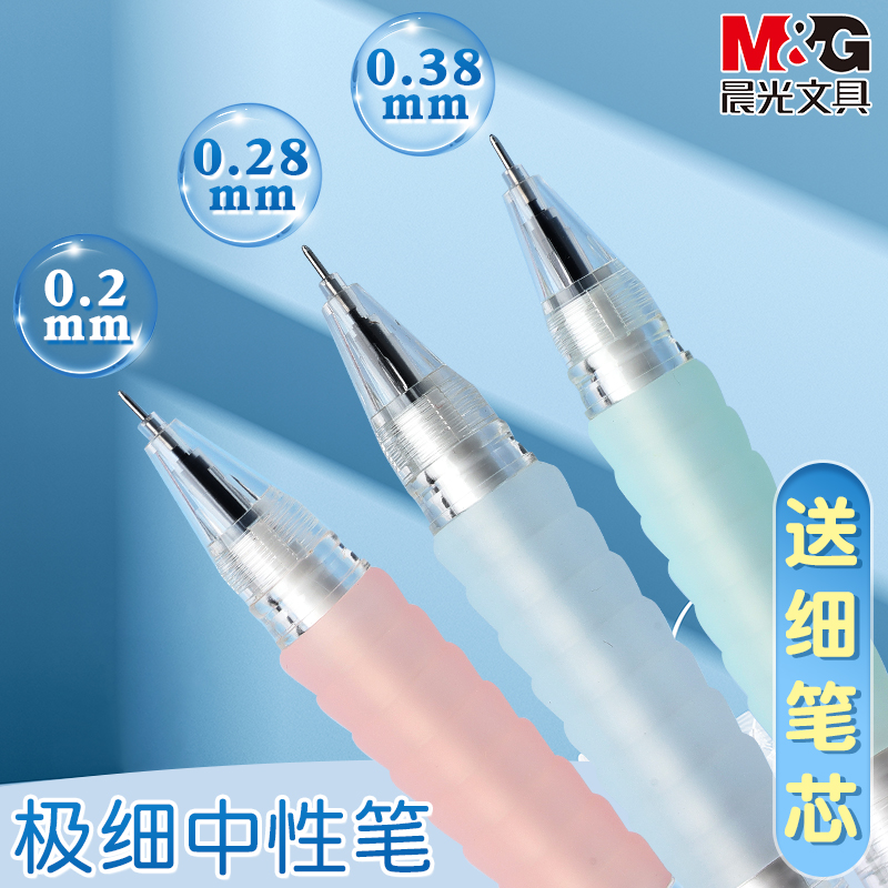 晨光0.2极细中性笔云握手细笔划学生用刷题做笔记全针管水笔财务记