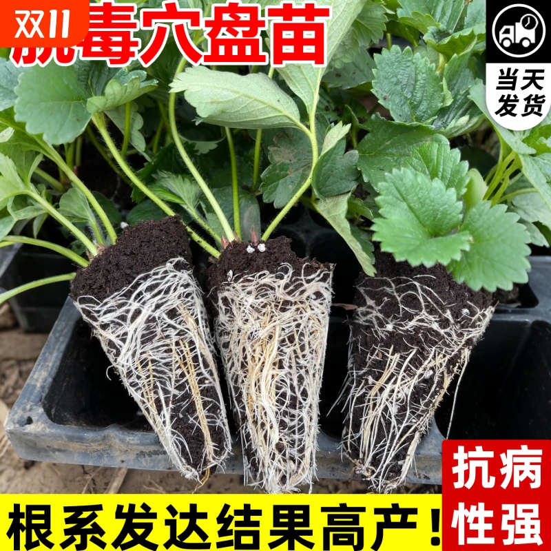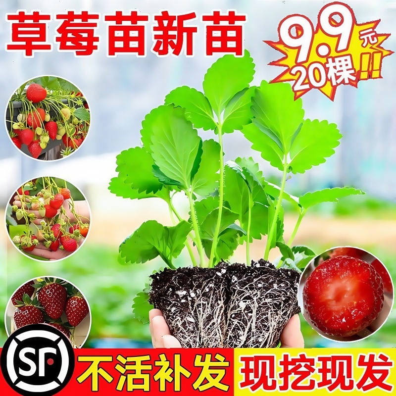 红颜奶油草莓苗四季结果种植苗带土白苗种秧种苗随珠阳台水果带盆