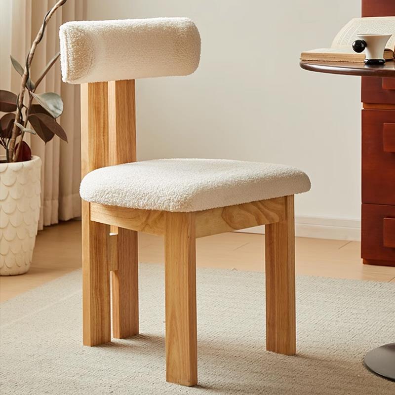 宏特维实木餐椅家用中复古设计师创意耳环椅子法式靠背羊羔绒梳化妆椅