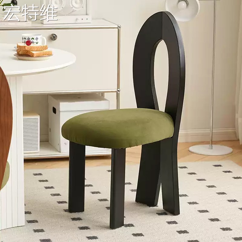 宏特维家用实木餐椅法式复古简约创意靠背椅北欧中古设计师休闲化妆椅