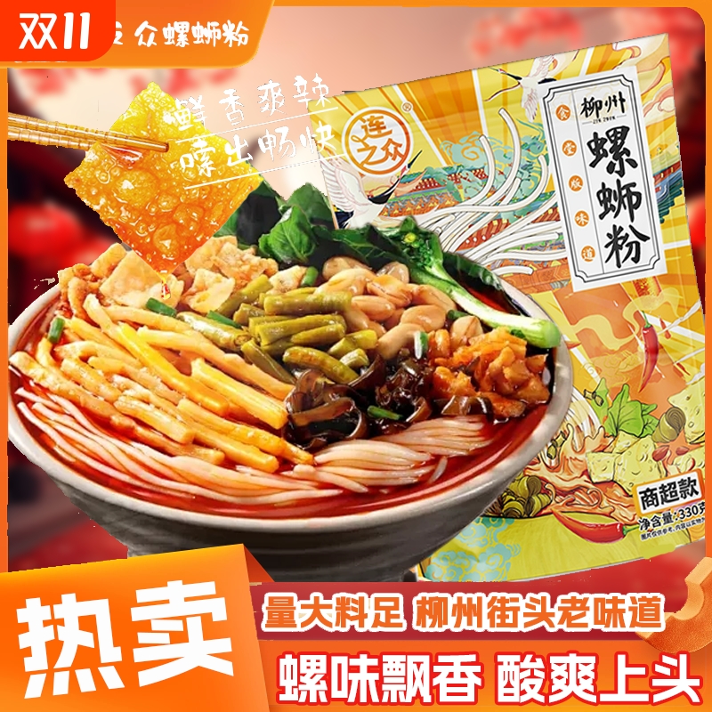 连之众3包*330g广西正宗柳州螺蛳粉香辣酸辣爆辣速食美味吃货美