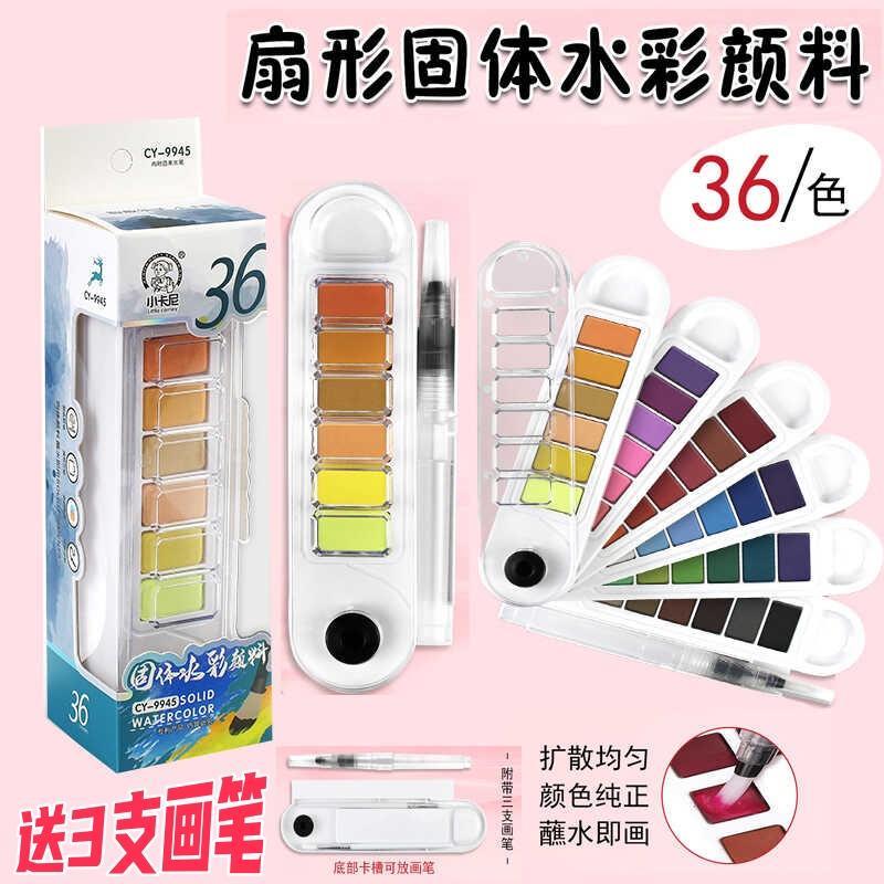 扇形盒装固体颜料12色便携水彩颜料工具学生画画初学者美术专业36