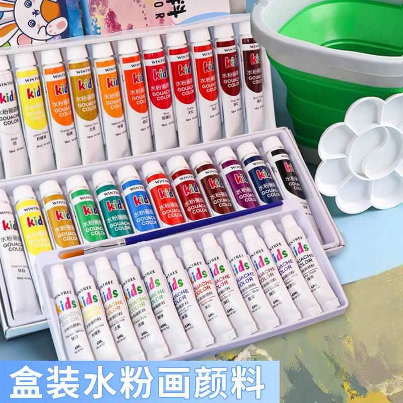 文萃水粉画颜料套装24色初学者手绘儿童绘画学生美术用无毒可水洗