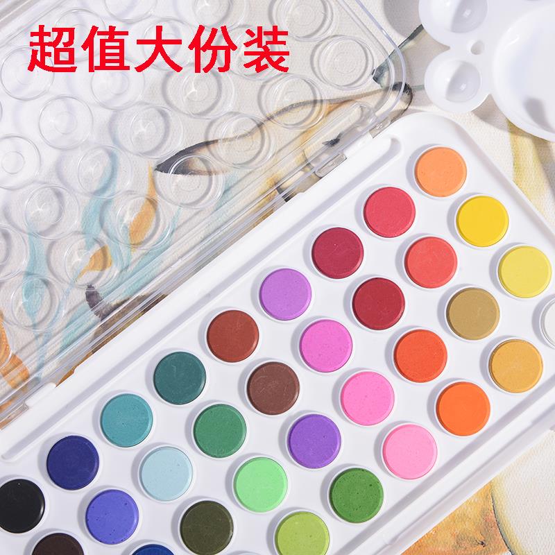 48色固体水彩颜料套装初学者美术手绘粉饼盒装便携式入门填画工具