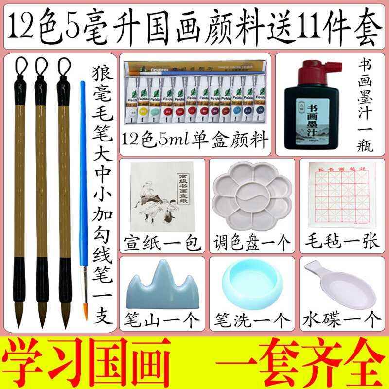 国画颜料12色18色24色36色初学者入门专用美术水墨画工具套装