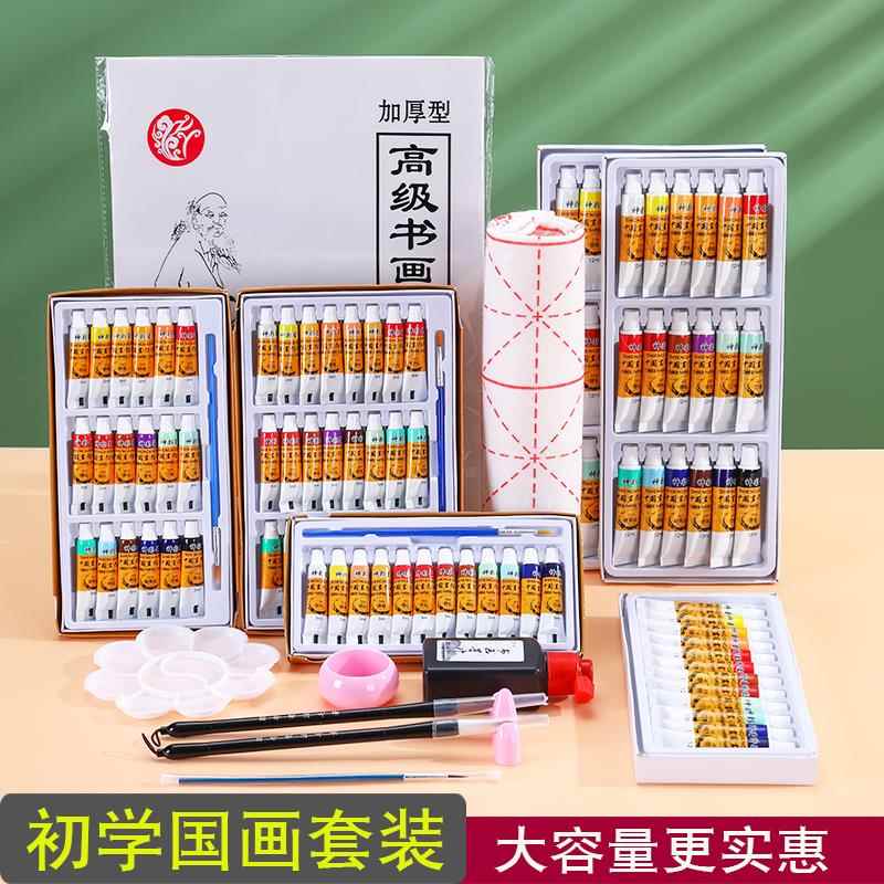 中国画颜料初学者入门套装大容量12色18色24色国画用品工具全套