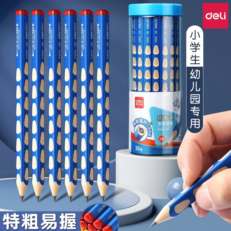 得力洞洞铅笔无毒小学生专用一年级幼儿园初学者矫正握姿铅笔粗杆加粗